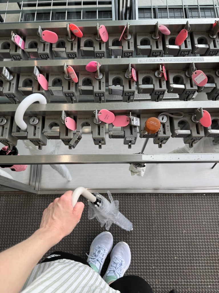 Mais nous étions plaisamment étonnées de découvrir que le porte-parapluie du musée possédait des petits cadenas individuels pour bien sécuriser ces précieux objets, grâce à une pièce de 100 yens, récupérable ensuite par une cérémonie de restitution.
