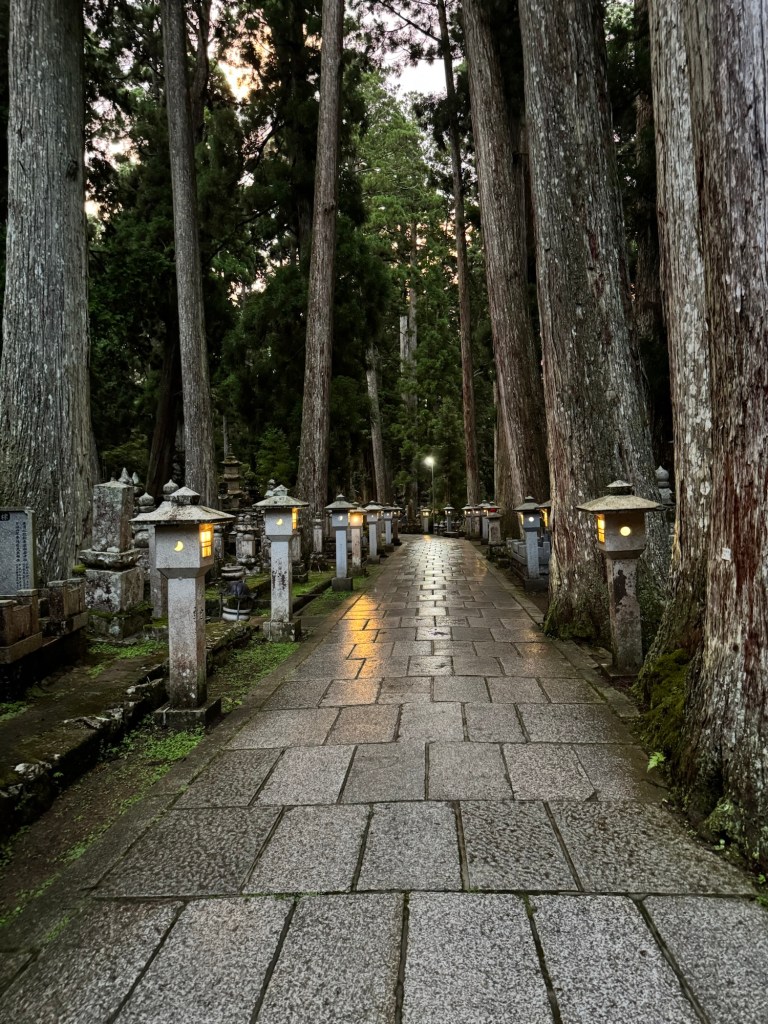 Située dans la péninsule de Kii, dans la préfecture de Wakayama, cette petite ville est connue, en premier lieu, comme un des sites clé du bouddhisme japonais. Un lieu de pèlerinage autant ancien – depuis le XIe siècle – qu’actuel. Elle abrite plus d’une centaine de temples, le mausolée de Kobo Daishi (le fondateur de l’école bouddhiste Shingon, qui a vécu au VIII-IXe siècle) et Okonu-in, le plus grand cimetière du Japon, avec plus de 200 000 stèles funéraires.
