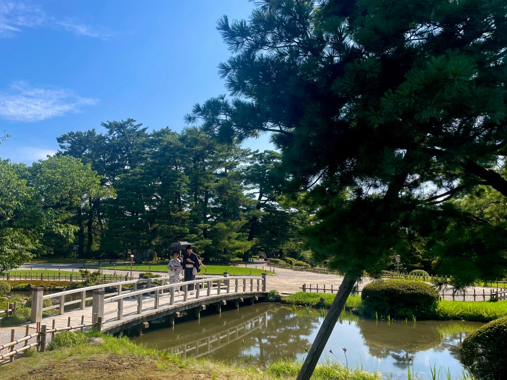 dit « Kyoto du Nord », une ville relativement petite mais connue pour son jardin Kenroku-en (un des trois plus beaux jardins du Japon, « le jardin aux six attributs ») et ses anciens quartiers de Geisha (Higashi-chaya) et de samouraïs (Nagamachi). Recommandée comme plus tranquille que Kyoto, notamment moins connue et envahie par les touristes, elle l’assure. Sans, bien entendu, rester un secret. Nos compatriotes touristes occidentaux aux shorts sont partout.